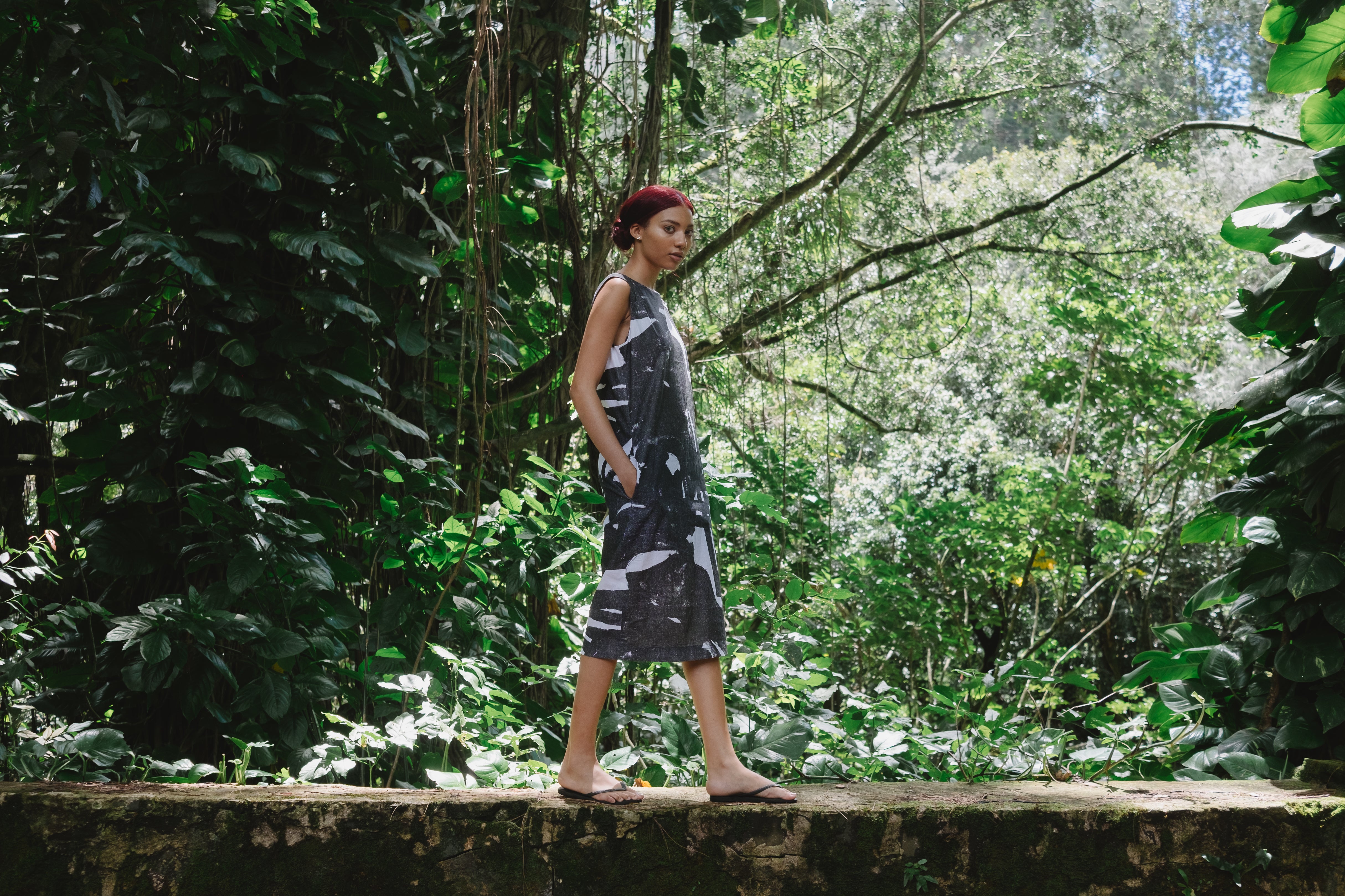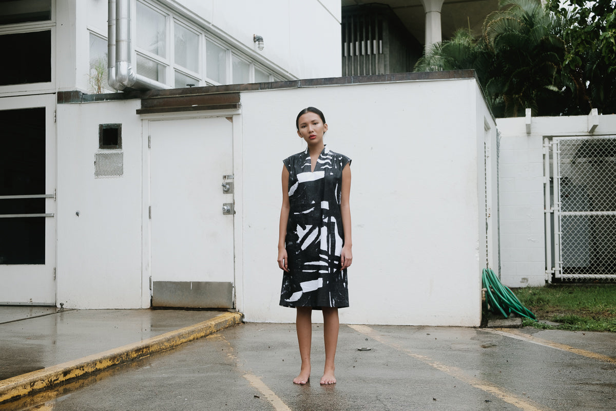 In one of our earliest prints Hawaiian print scale meets a graphic New York style.